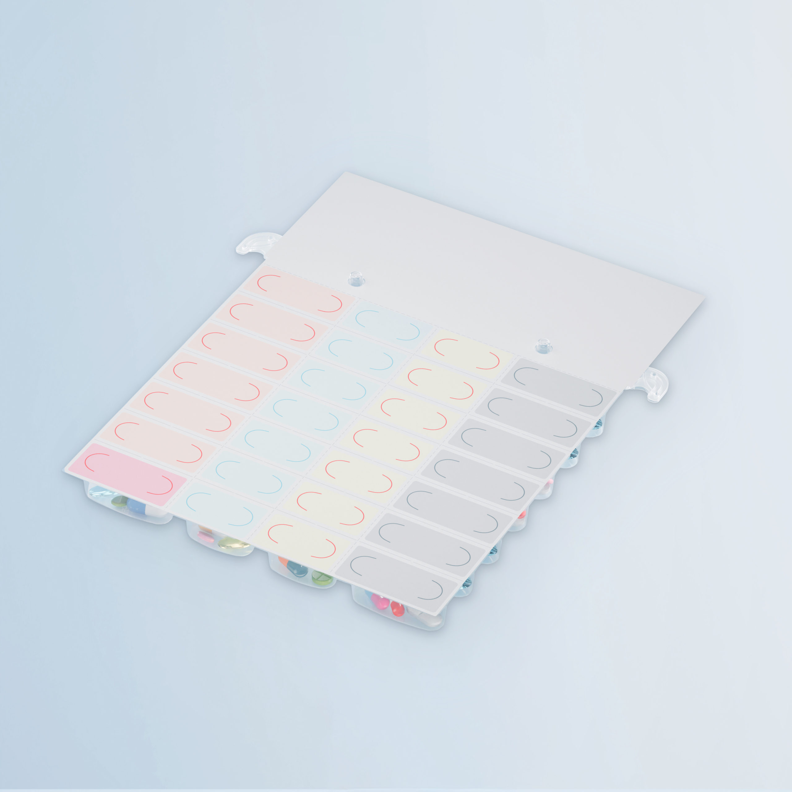 - Vérification plus rapide grâce à un matériau moins réfléchissant (et moins de fatigue oculaire) (piluliers).