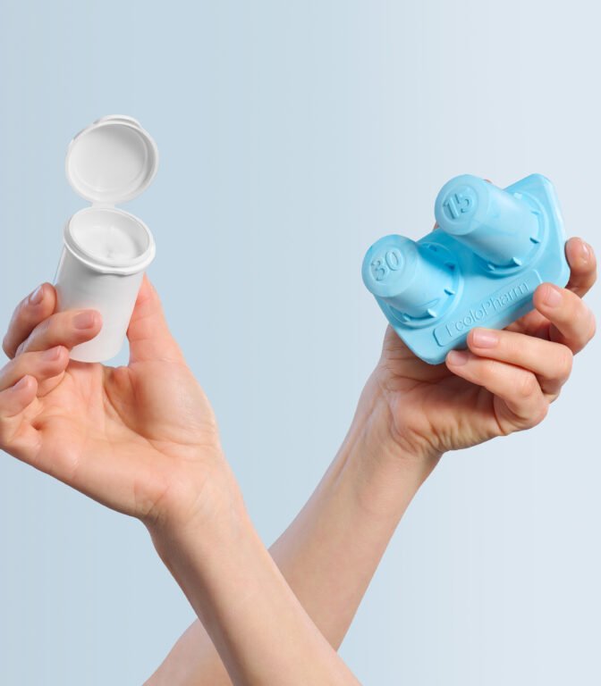 Le pot à onguent EcoloJar est le seul à être ajustable. Grâce à son fond télescopique, un seul pot permet de préparer des prescriptions de trois formats différents (15, 30 et 60 ml).